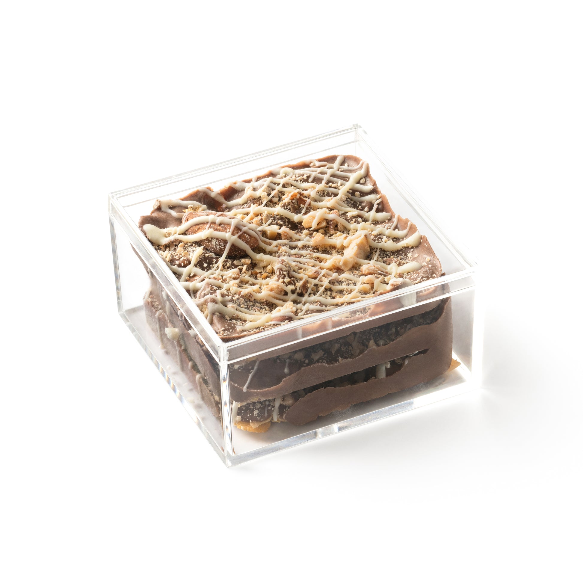 Our Classic Sample Box Collection box includes three handcrafted pieces of rich chocolate with options of bark, clusters or graham crackers. Each with a delicious mix of nuts, crunch, Carmel and assorted gourmet toppings. A perfect trio of texture, flavor, and indulgence.